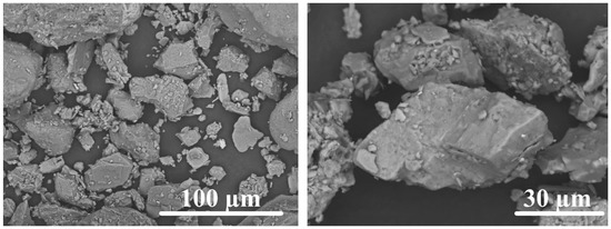 Well-sorted, fine-grained quartz-feldspar sands with single rock fragments, amphibole grains, and hematite and mica particles represent the material of the Ahb and Eb horizons of Paleosoil 1. Quartz and coarse feldspar grains are often characterized by close-to-perfect roundness, which is generally characteristic of the aeolian sands of the Ob–Tomsk interfluve [30]. Organo-ferruginous coatings and adhered particles of fine silt are noticeable on the surfaces of individual grains in the Ahb horizon. Coatings on grains in the Eb horizon are almost absent. Angular mineral grains from the fraction of coarse silt and very fine sand often have traces of crushing (Figure 6).