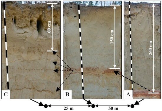 - Jankowski, M. The Evidence of Lateral Podzolization in Sandy Soils of Northern Poland. Catena 2014, 112, 139–147. [Google Scholar] [CrossRef]