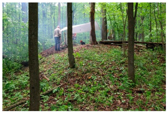 General view on the burial mound and the broadleaf forest vegetation of the study site.
