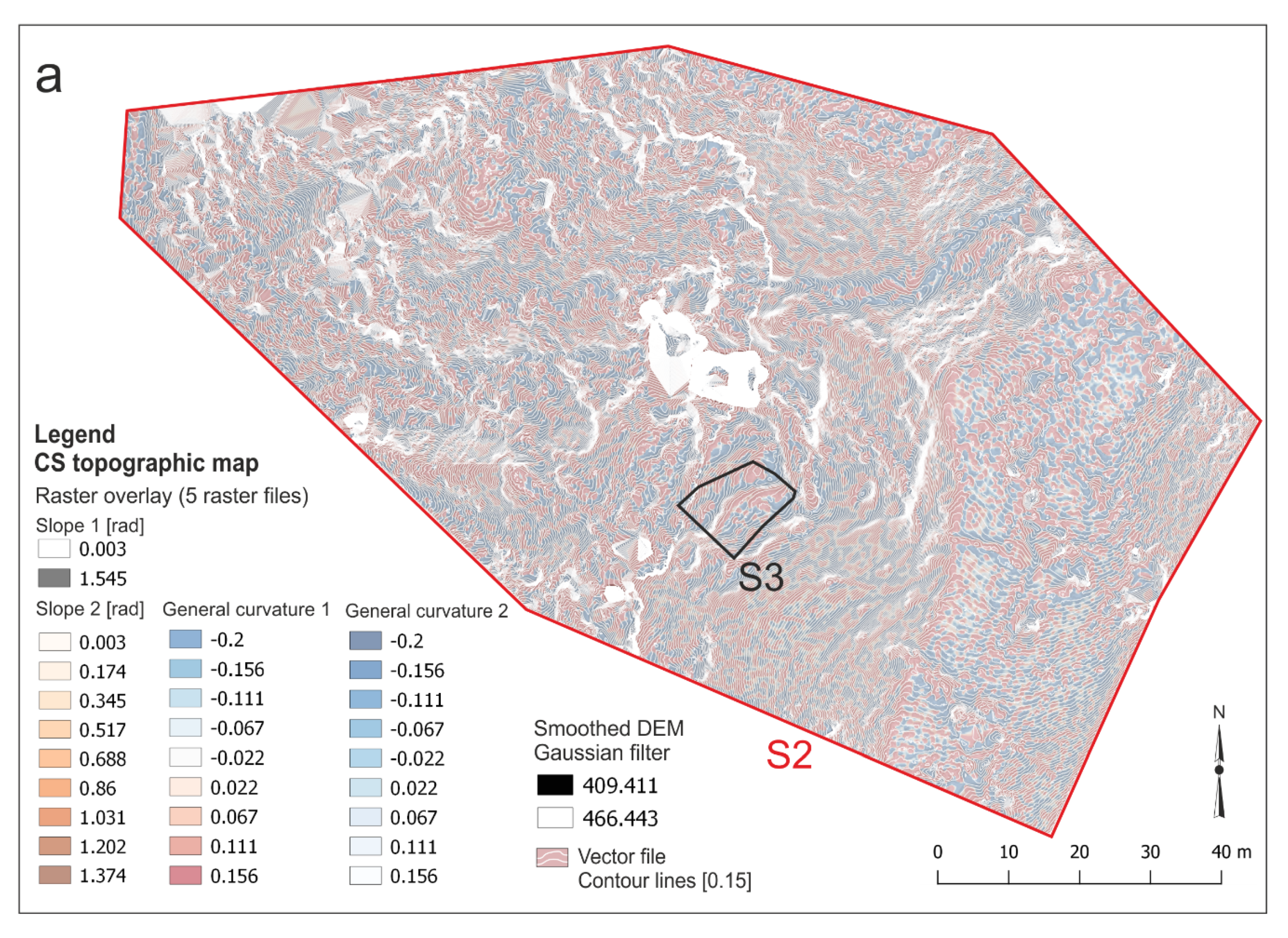 Raster derivatives from LAStools were subsequently interpreted in the Quantum Geographic Information System 3.2.3. (QGIS) and in the System for Automated Geoscientific Analyses 2.3.2 (SAGA) (modules are explained below) using the coordinate system EPSG 5513 (data processing workflow with detailed calculations is in Supplementary Material S3).
