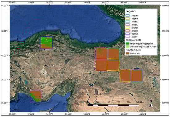 | Turkey | T36SVF | T36TWL | T37SED | T37SFD | T37TEE | T37TFE | T38SKH | T38SLH |