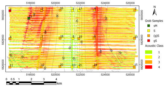 - Alevizos, E.; Snellen, M.; Simons, D.G.; Siemes, K.; Greinert, J. Acoustic discrimination of relatively homogeneous fine sediments using Bayesian classification on MBES data. Mar. Geol. 2015, 370, 31–42. [Google Scholar] [CrossRef]