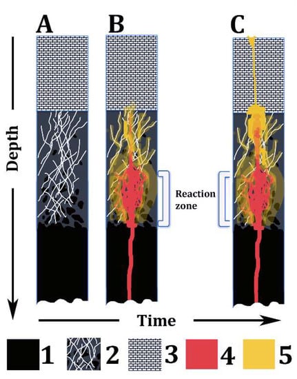 - Rudge, J.F.; Kelemen, P.B.; Spiegelman, M. A simple model of reaction induced cracking applied to serpentinization, carbonation of peridotite. Earth Planet. Sci. Lett. 2010, 291, 215–227. [Google Scholar] [CrossRef]