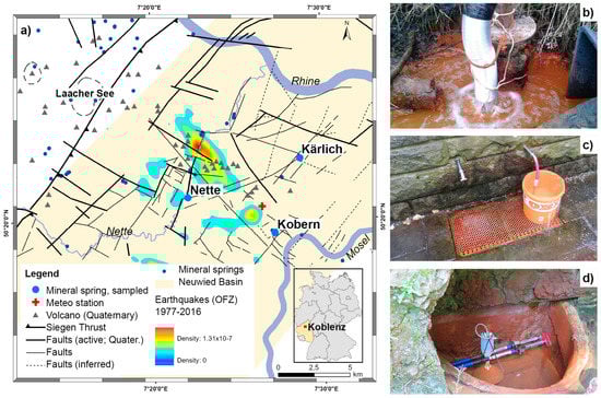 Earthquake events in the sampling region (Figure 1a) that occurred during the sampling campaign were recorded in seismological databases provided by the Erdbebenstation Bensberg []; www.seismo.uni-koeln.de/events/index.htm and the Landesamt für Geologie und Bergbau, Rheinland-Pfalz []; http://www.LGB-RLP.de/fachthemen-des-amtes/landeserdbebendienst -rheinland-pfalz/.