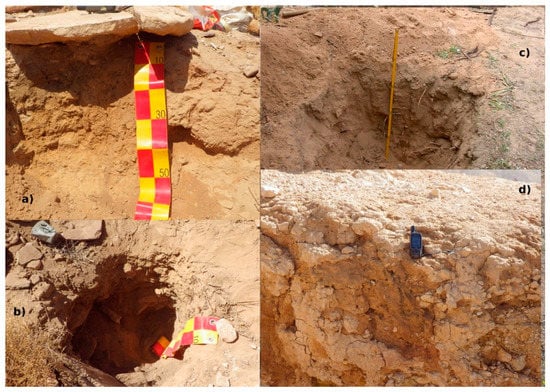 We studied soils covering ruins, with parent materials probably largely derived from aeolian sediments. The term “ruin soils” is thus meant to include sediments that gathered in the ruins. Soil types were classified according to the World Reference Base of Soil Resources WRB [52] (see Table 2 and Table 3). Detailed descriptions of the profiles and reference sampling sites are provided in Appendix A. Table 1 presents the studied sites in a compressed form.