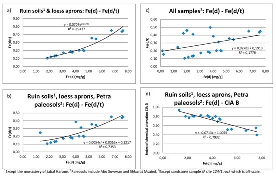It has already been proposed that sediments in geoarchaeological archives may include a major dust component [31]. Holocene dust deposition at Tell Brak in Syria probably took place more or less continuously, at least during the third millennium BCE [32]. However, soils formed on sediments covering ancient ruins may include significant amounts of archaeological substrate, such as the remains of mudbricks [33]. Local and remote dust sources may have mixed. Disentangling these possible sources is thus a main challenge that needs to be met in order to interpret the sediments in archaeological ruins as environmental archives.