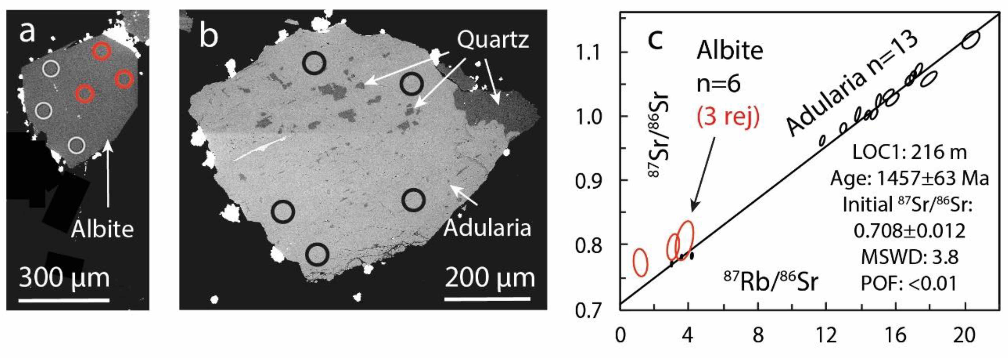 | 21 | 50 | Albite | 3.72 | 7.93% | 0.805 | 2.32% | 0.47 | 35.30% | 6.16% | 30 | rejected | high 87Rb/86Sr errors |