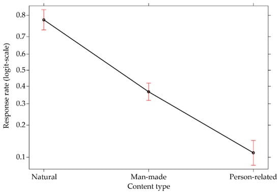 Response rates relating to content types (natural, man-made, and person-related) expressed in logit-scale.