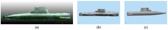 The submarine hull was modelled with the help of close-range photogrammetry and terrestrial laser scanning techniques. The research object is a decommissioned Polish Navy Ship Jastrzab (PNS Jastrzab), ex-HNoMS “Kobben” (S-318) (presented in Figure 1). The submarine represents the Kobben class (also known as Type 207), which is a customized version of the German Type 205 submarine. Fifteen vessels of this class were built for the Royal Norwegian Navy in the 1960s. Later on, the class has been withdrawn from service in the Norwegian and Danish Navy. Some of them was transferred to Poland and The Polish Navy still operates Kobben-class submarines. The PNS Jastrzab submarine was commissioned on 15, August 1964, which was transferred to Poland in 2002 for spare parts on 17, December 2011, which moved to the Polish Naval Academy in Gdynia as a base for the crew training laboratory.