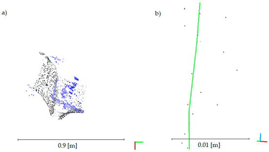 The ICP (Iterative Closest Points) algorithm was employed to connect scan positions originating from an active sensor in the form of a laser scanner. It is one of the most popular algorithms used to connect two sets of data, which iteratively matches the transformation by means of the matching points and minimization of the error. The algorithm has been widely presented in the literature. The initial variant of the algorithm was presented in Reference [13]. However, the methods have been relevantly shown and compared in Reference [14]. Based on this reference, the ICP algorithm may be insufficient in either the cases of large distance, rotation, or coverage between datasets. The simplest solution is to initially establish the sets indicating the corresponding points in both sets, and to apply the ICP algorithm. In some cases, despite a correct reference, the algorithm is unable to find adequate coverage. Such a situation makes the solutions in the articles suitable for use [15,16].