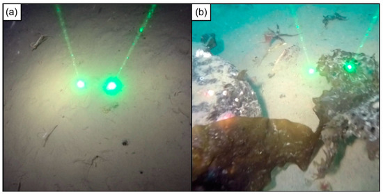 Examples of coarse sediment (a) absence and (b) presence in underwater video.