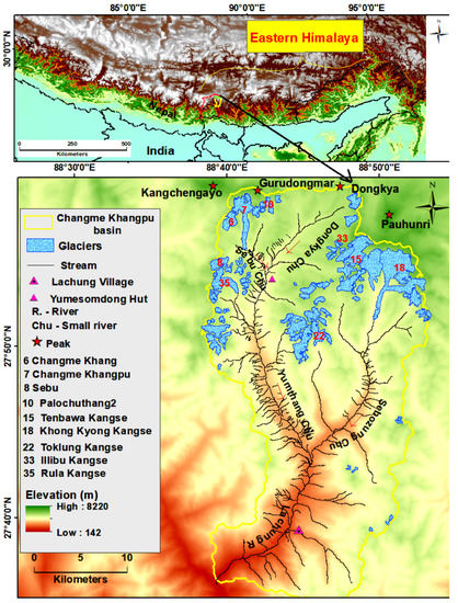 Location map of the study region: Changme Khangpu basin is located in the north-eastern part of Sikkim, a part of Eastern Himalaya, India.