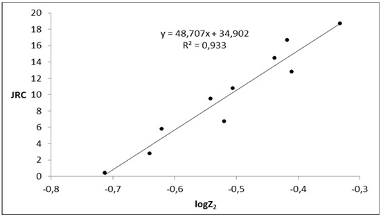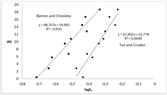 JRC-logZ2 relationship for the ten standard JRC profiles of Barton and Choubey [4].