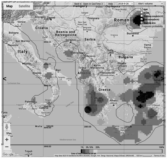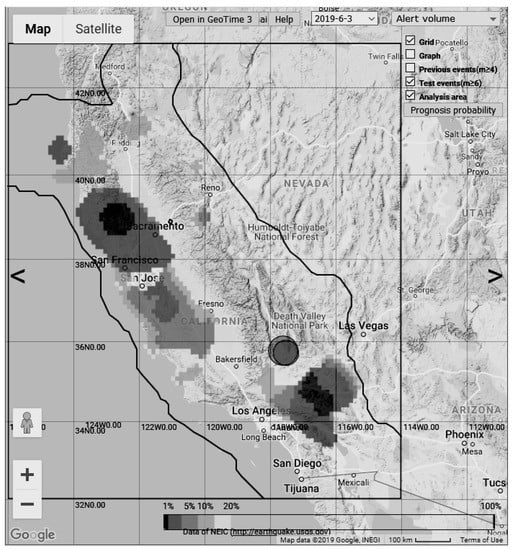 - Gitis, V.G.; Derendyaev, A.B. Web-Based GIS Platform for Automatic Prediction of Earthquakes. In Proceedings of the International Conference on Computational Science and Its Applications, Melbourne, Australia, 2–5 July 2018; pp. 268–283. [Google Scholar]