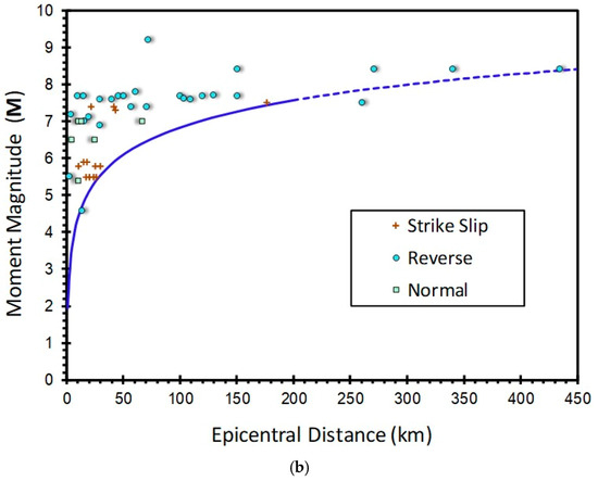 - Galli, P. New empirical relationships between magnitude and distance for liquefaction. Tectonophysics 2000, 324, 169–187. [Google Scholar] [CrossRef]