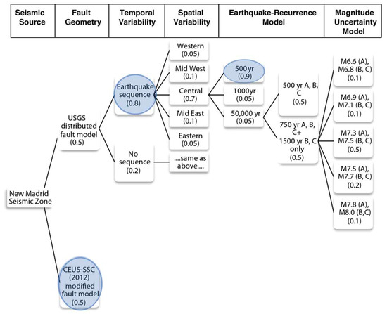 - Cramer, C.H.; Boyd, O.S. Why the New Madrid earthquakes are M 7–8 and the Charleston earthquake is ~M 7. Bull. Seismol. Soc. Am. 2014, 104, 2884–2903. [Google Scholar] [CrossRef]