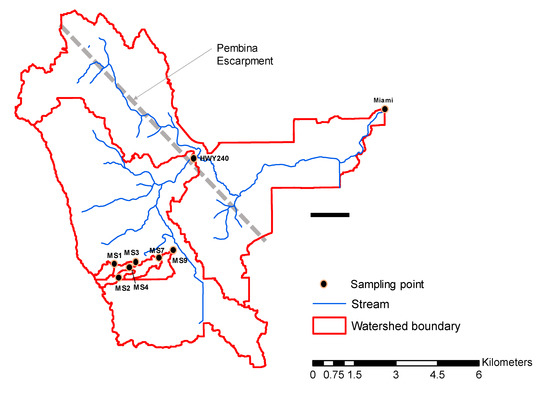 The authors thank the staff of Agriculture and Agri-Food Canada, who worked on the South Tobacco Creek Watershed evaluation of beneficial management practices (WEBs) projects, for assisting in sample collection. We finally thank all the colleagues who analyzed the water samples at the labs of the Manitoba’s Watershed Systems Research Program and the Center for Earth Observation Science at the University of Manitoba, Canada.