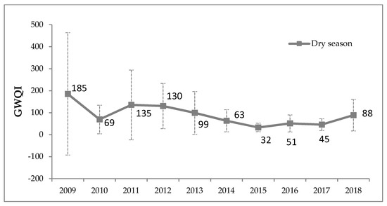The average of GWQI units of eight wells in the dry season, during 2009–2018.