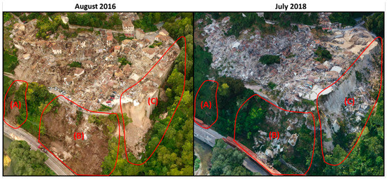 To the authors’ knowledge, the referenced Geotechnical Extreme Events Reconnaissance (GEER) reports follow international guidelines for post-disaster reconnaissance, but the scope of this paper is neither Rapid Mapping (hours to days post-disaster) nor Risk and Recovery Mapping (weeks to a couple months after the event) as described by Copernicus Emergency Management (https://emergency.copernicus.eu/) [1,2,3,4,5,15]. As the sequential data is as far out as 2 years post-disaster, this paper is an additional ad hoc representation of the earthquake recovery at Pescara del Tronto.