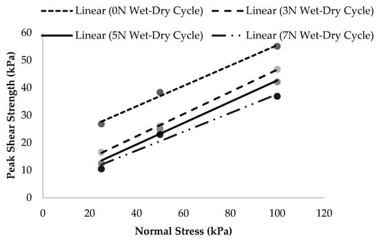 3.3. Effect of the Wet-Dry Cycle on Shear Strength