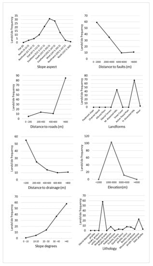 Figure 4 shows the total number of landslides in each class of the eight conditioning factors. This also shows that which class is essential for each conditioning factor and how each conditioning factors are classified based on landslide inventory.
