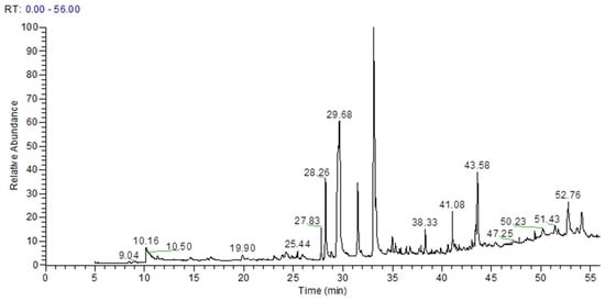 GC-MS chromatogram of ethyl acetate fraction of Anogeissus acuminata leaf extract.