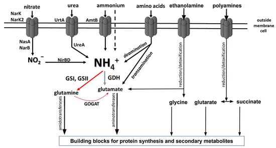 - Amon, J.; Titgemeyer, F.; Burkovski, A. Common patterns—Unique features: Nitrogen metabolism and regulation in Gram-positive bacteria. FEMS Microbiol. Rev. 2010, 34, 588–605. [Google Scholar] [CrossRef] [PubMed]