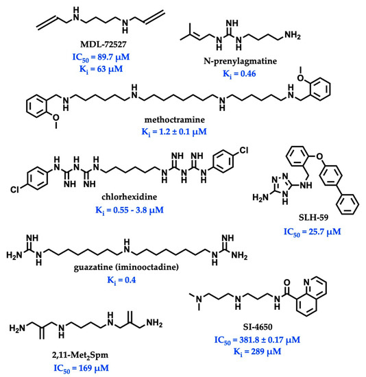 Structures and inhibitory values (IC50 and Ki) of SMOX inhibitor reported in the literature.
