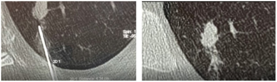 - Huang, M.-D.; Weng, H.-H.; Hsu, S.-L.; Hs, L.-S.; Lin, W.-M.; Chen, C.-W.; Tsai, Y.-H. Accuracy and complications of CT-guided pulmonary core biopsy in small nodules: A single-center experience. Cancer Imaging. 2019, 19, 51. [Google Scholar] [CrossRef]