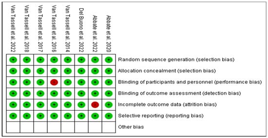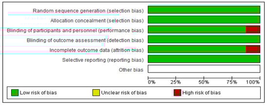- Higgins, J.P.T.; Altman, D.G.; Gøtzsche, P.C.; Jüni, P.; Moher, D.; Oxman, A.D.; Savović, J.; Schulz, K.F.; Weeks, L.; Sterne, J.A.C. The Cochrane Collaboration’s tool for assessing risk of bias in randomised trials. BMJ 2011, 343, d5928. [Google Scholar] [CrossRef] [PubMed]