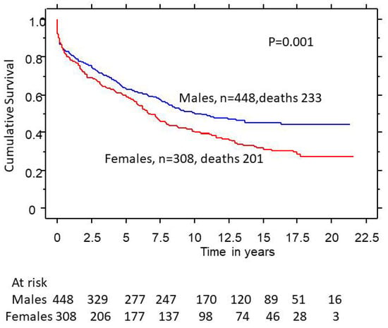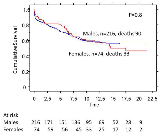 3.5. Gender Effects on Survival in Nonsurgical Patients