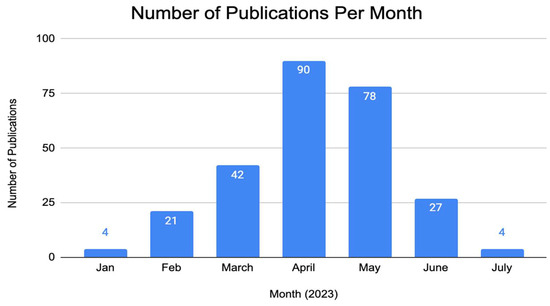 Number of publications on ChatGPT in the medical field per month since the beginning of 2023.