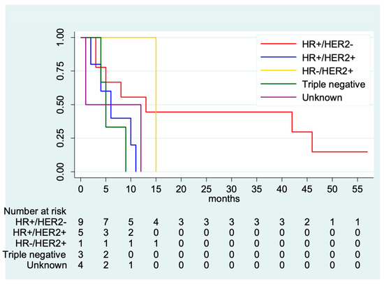 - Leone, J.P.; Leone, J.; Zwenger, A.O.; Iturbe, J.; Leone, B.A.; Vallejo, C.T. Prognostic factors and survival according to tumour subtype in women presenting with breast cancer brain metastases at initial diagnosis. Eur. J. Cancer 2017, 74, 17–25. [Google Scholar] [CrossRef] [PubMed]