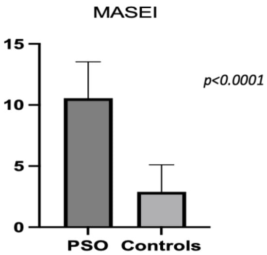 Mean MASEI score in PsO and controls.