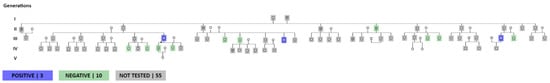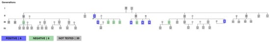 The family chart graph indicates a total of 51 members (Figure 6). Of a total of 8 siblings of the index patient, 7 have died, with the place of death in the province of Loja. The causes of death have no established diagnosis within the family history; however, close relatives express that the deceased relatives presented symptoms of generalized weakness, cachexia and dyspnea, with an outcome of sudden death. There is a history of consanguinity in the ancestors of the family. The origin of the family from the Quilanga canton, Loja province.