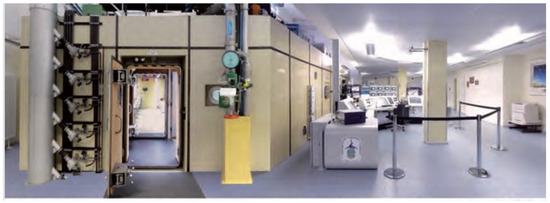 Altitude–climate situation chamber in Königsbrück, with a view of the control station and into the chamber (Source: Senior physician PD Dr. Carla Ledderhos).