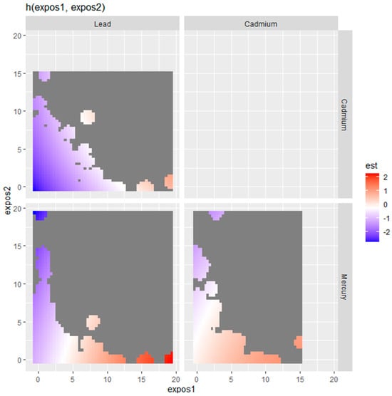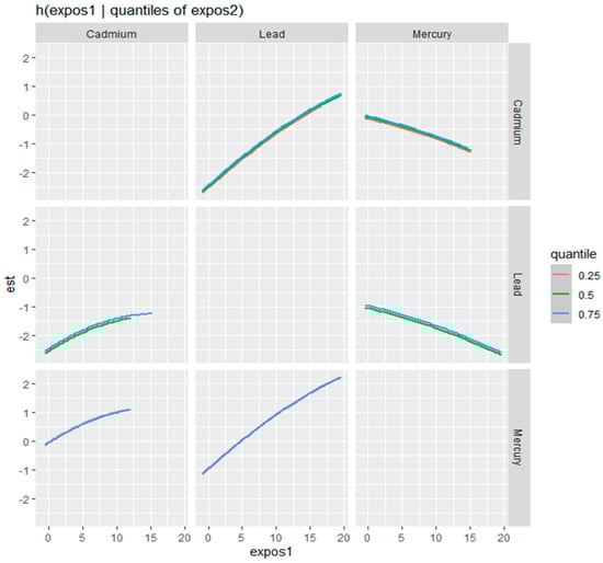 This figure demonstrates the complexity of the exposure-response relationship and highlights how the effects of one metal may vary depending on the level of exposure to another metal.