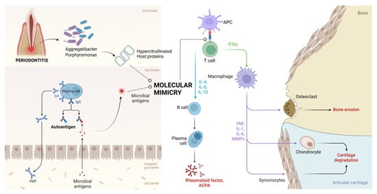 - de Molon, R.S.; Rossa, C., Jr.; Thurlings, R.M.; Cirelli, J.A.; Koenders, M.I. Linkage of Periodontitis and Rheumatoid Arthritis: Current Evidence and Potential Biological Interactions. Int. J. Mol. Sci. 2019, 20, 4541. [Google Scholar] [CrossRef]
