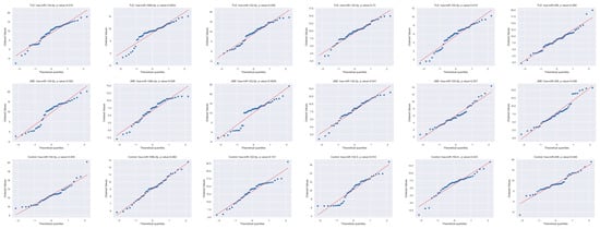 We evaluated the expression of selected miRNAs in the blood plasma of different groups. Distribution tests reveal that the biggest amount of data have an abnormal distribution pattern (Figure 2), so we conducted the Kruskal–Wallis test to compare these groups.
