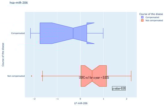 Expression pattern of has-miR-206 for different compensated and not compensated course of JME.