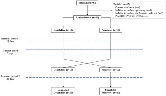 Saiphoklang N, Panichaporn S, Siriyothipun T, Ruchiwit P. Effects of Oral Doxofylline and Procaterol on Chronic Obstructive Pulmonary Disease: A Randomized Crossover Study. Medical Sciences. 2025; 13(2):49. https://doi.org/10.3390/medsci13020049