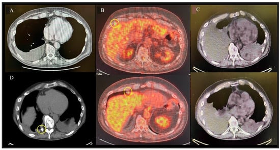 In December 2022, follow-up 18F-FDG PET imaging showed recurrence of the right pleural effusion, although no pathological FDG uptake was observed (Figure 2C). A second thoracentesis was performed, but cytology was inconclusive for technical reasons. After reassessment by the MTDB, the patient was once again deemed eligible for PITAC.