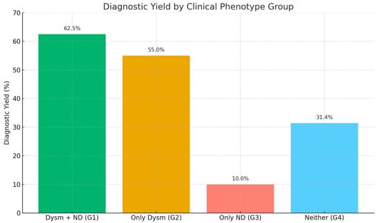 The statistically significant difference in the diagnostic yield among the groups underscores the importance of deep phenotyping when choosing specific genetic testing strategies. These findings align with prior studies suggesting that the diagnostic success of next-generation sequencing increases with the complexity and specificity of the clinical phenotype [16].