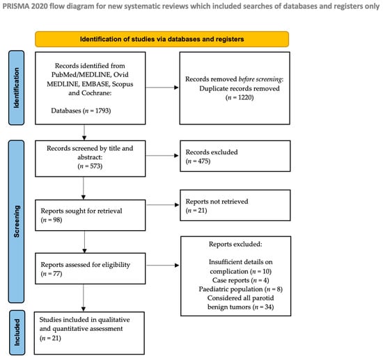 - Foresta, E.; Torroni, A.; Di Nardo, F.; de Waure, C.; Poscia, A.; Gasparini, G.; Marianetti, T.M.; Pelo, S. Pleomorphic adenoma and benign parotid tumors: Extracapsular dissection vs superficial parotidectomy—Review of literature and meta-analysis. Oral Surg. Oral Med. Oral Pathol. Oral Radiol. 2014, 117, 663–676. [Google Scholar] [CrossRef] [PubMed]