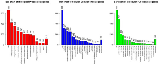 The largest number of genes was enriched in non-specific Gene Ontology terms: a total of 424 fell into the metabolic process category, 353 into the biological regulation category, and 268 into the response to stimulus category. Nuclear genes (321) and membrane lumen genes (307) were also most frequently encountered (Figure 4).