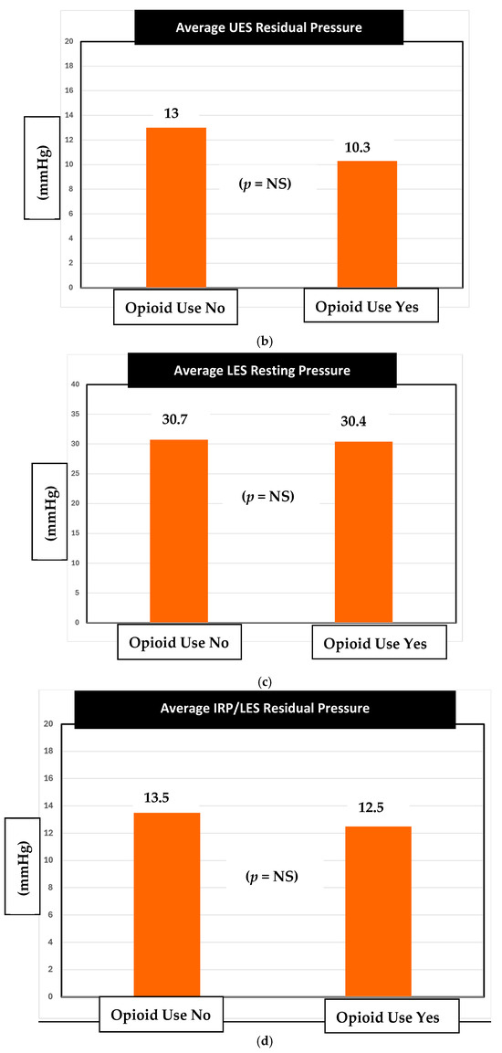 Furthermore, there was no statistically significant difference in LES residual pressure between opioid users and non-opioid users (Figure 2d).