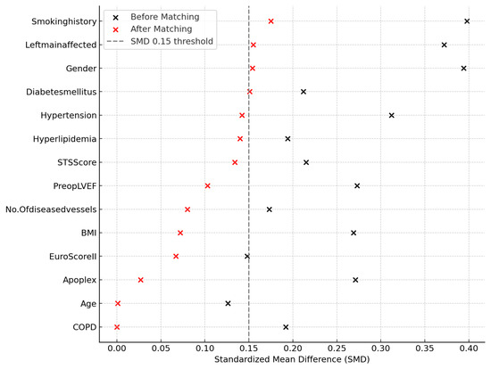 3.1. Preoperative Demographic and Clinical Characteristics Following Propensity Score Matching