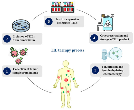 Diagrammatic representation of the process of TIL therapy production (Created in BioRender. Rabbani, S. (2025) https://BioRender.com/632n5f1 accessed on 24 July 2025).