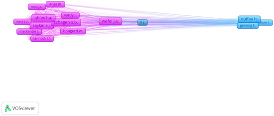 A dense author core was identified, led primarily by Europe-based researchers. Notably, Francis Eustache, Bénédicte Giffard, and Florence Joly (Caen-Normandy University) were among the most prolific contributors, while Margriet M. Sitskoorn (Tilburg University) was the most cited. Despite the presence of high-impact individuals, collaboration at the institutional level appeared limited, with research networks remaining relatively fragmented. Nevertheless, emerging connections—such as between the Faculty of Medical Sciences and the Department of Medicine at Chang Gung School—may signal early developments toward broader cooperation.