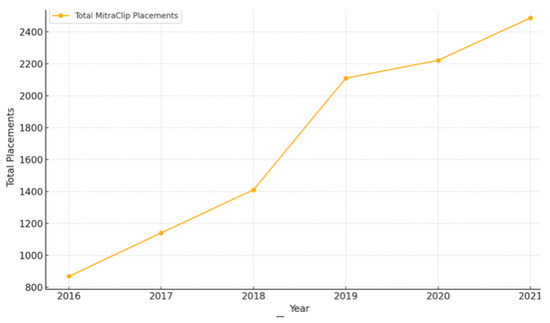 Trends in MitraClip Placements (2016–2021).